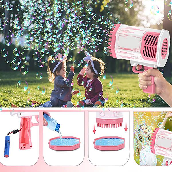 Aproveche la oferta con descuento y pida hoy su Pistola de burbujas LED de 69 orificios | BUBBLEPUFF!