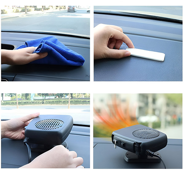 ¡No necesitas herramientas! Simplemente fíjalo al salpicadero con la base adhesiva, conéctalo al encendedor del coche y estarás listo para conducir en invierno.