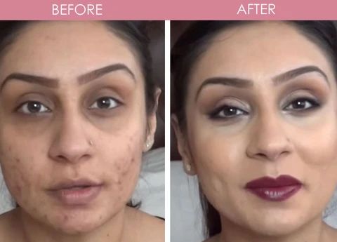 Funciona como una base de maquillaje para disimular totalmente las imperfecciones, incluyendo arrugas, manchas, acné, poros dilatados, cicatrices de acné y cualquier mancha oscura.