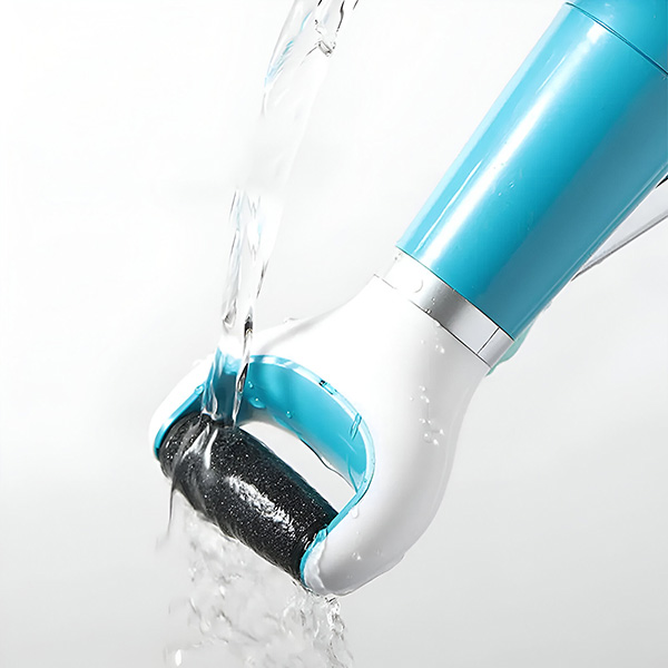Fácil de limpiar y usar en condiciones secas o húmedas. Su cabezal giratorio permite un manejo sencillo, incluso para quienes se inician en el cuidado de los pies en casa.
