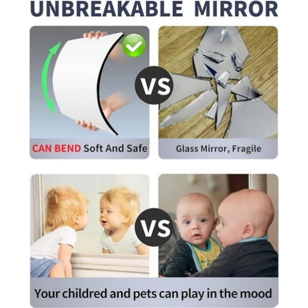 Fabricado en poliestireno, este espejo es seguro, flexible y no se rompe si se cae.