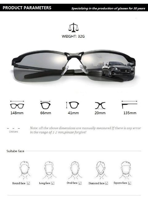 Nuestras gafas CHROMICLENS están fabricadas con lentes polarizadas fotocromáticas especiales. Cuando conduzca de noche o en un entorno oscuro, las lentes serán transparentes y claras para mejorar la visibilidad, reduciendo eficazmente el deslumbramiento. Durante el día, filtran eficazmente la luz fuerte, mejoran la agudeza visual, reducen la fatiga ocular y mantienen los ojos siempre cómodos durante actividades al aire libre.