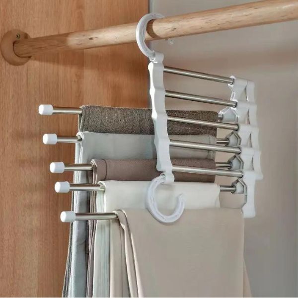 ¡No esperes más! Mejora la organización de tu armario y ahorra espacio con este extraordinario colgador de pantalones de 5 niveles.