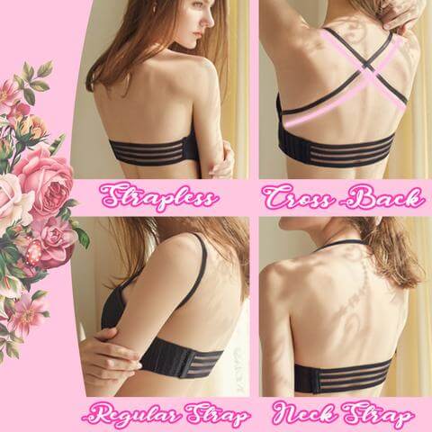 - Cuatro maneras de llevarlo: Es el sujetador perfecto para ropa sin tirantes, sin espalda, de corte bajo, escotada, de cuello halter, entrecruzada u otros estilos reveladores. Proporciona diferentes sensaciones para sus diferentes atuendos.
